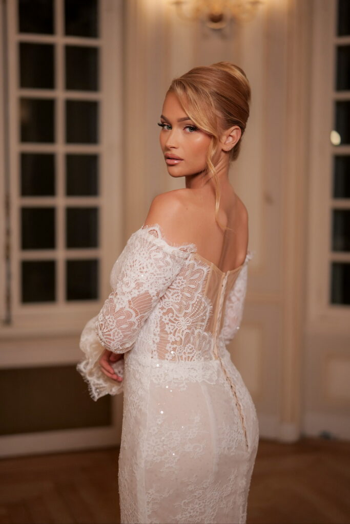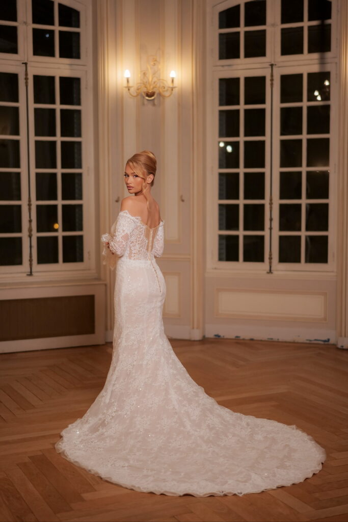 Confectionnée à la main dans notre atelier, votre robe évolue à travers plusieurs essayages pour un ajustement parfait. Le délai de réalisation est de 3 à 6 mois, selon la complexité du modèle.